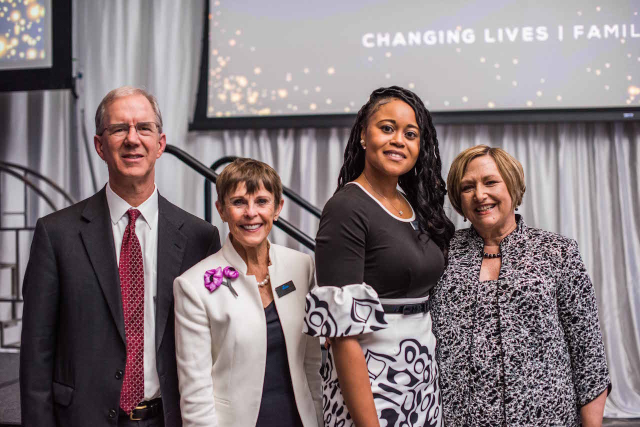 Left to right: ACCESS College Foundation Board Chairman Frank Batten Jr.; Board Member Joan Brock; ACCESS Alumni and the Gala’s Keynote Speaker Dr. Melody Shelton Williams; and ACCESS President & CEO Bonnie Sutton.