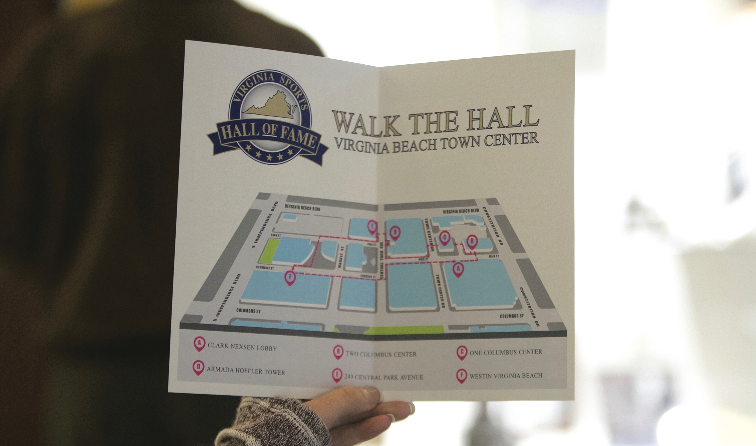 That “center stage” is now Virginia Beach’s Town Center, where a dramatically scaled down and re-imagined Hall of Fame features a free pedestrian tour of rotating exhibits installed at six publicly accessible indoor locations in office and hotel lobbies.