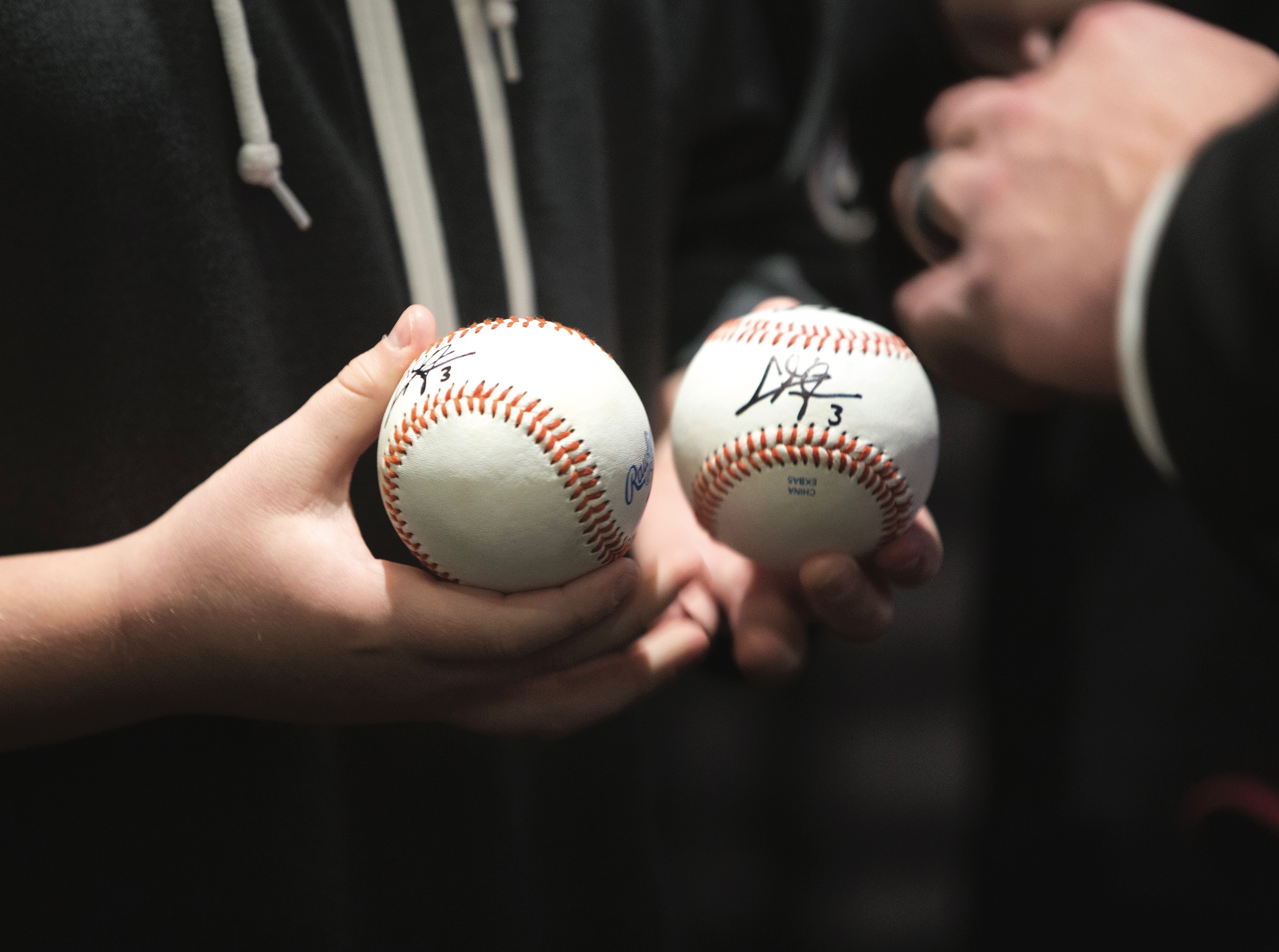 Baseballs that a fan brought to the Hoos on First event, signed by Chris Taylor and Mark Reynolds.